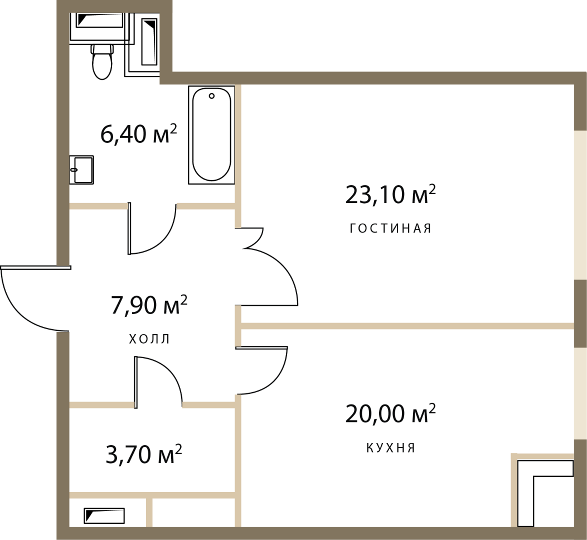 Однокомнатная квартира: 61,1 м2