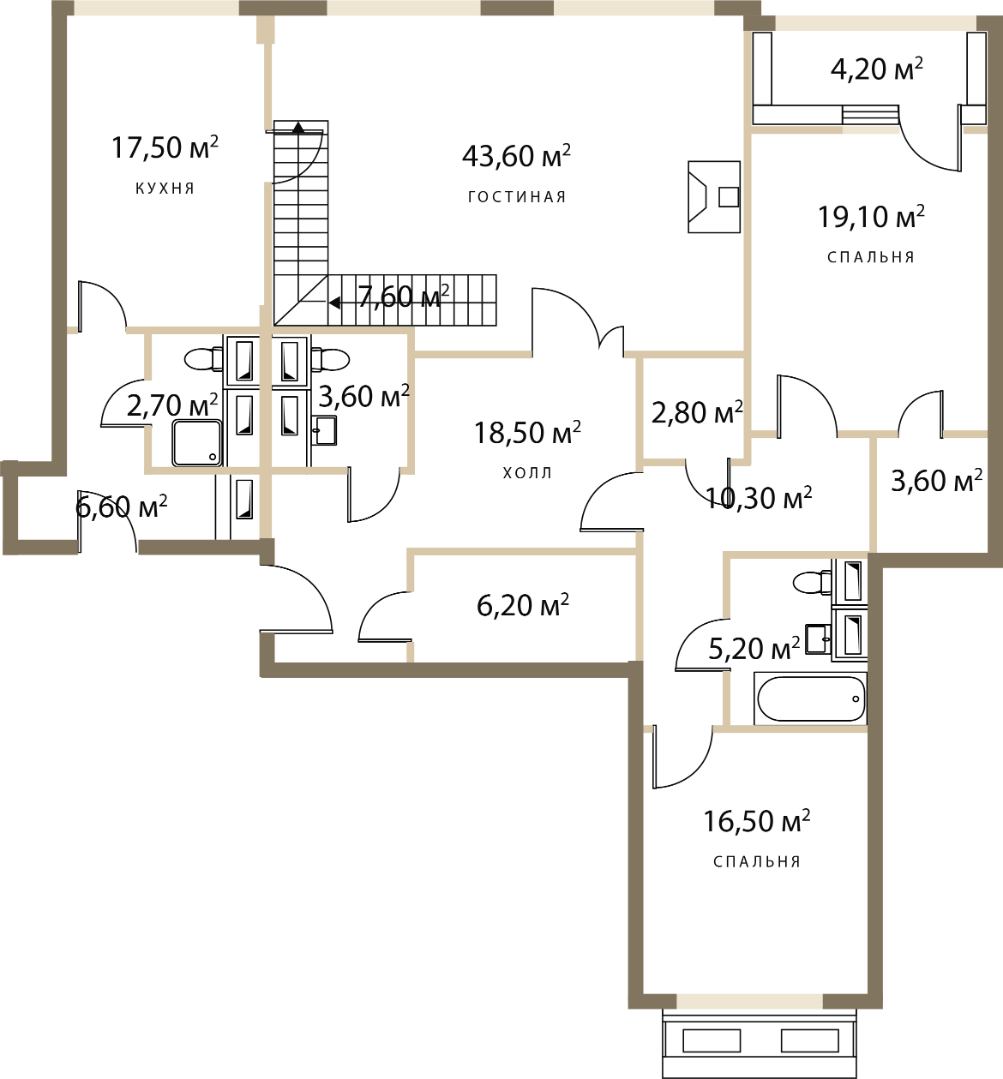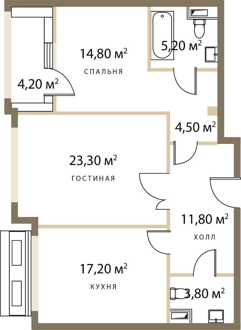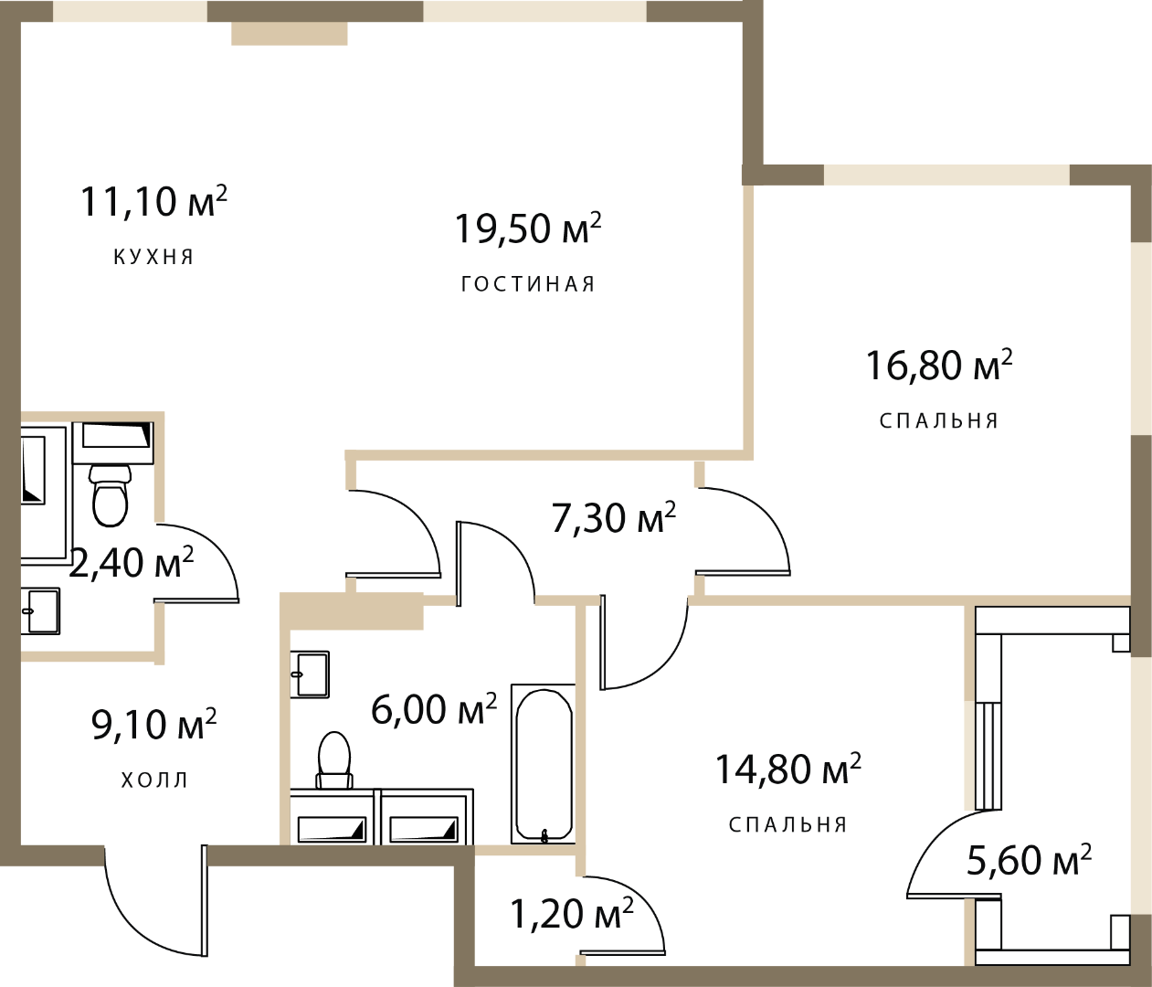 Двухкомнатная квартира: 82,7 м2