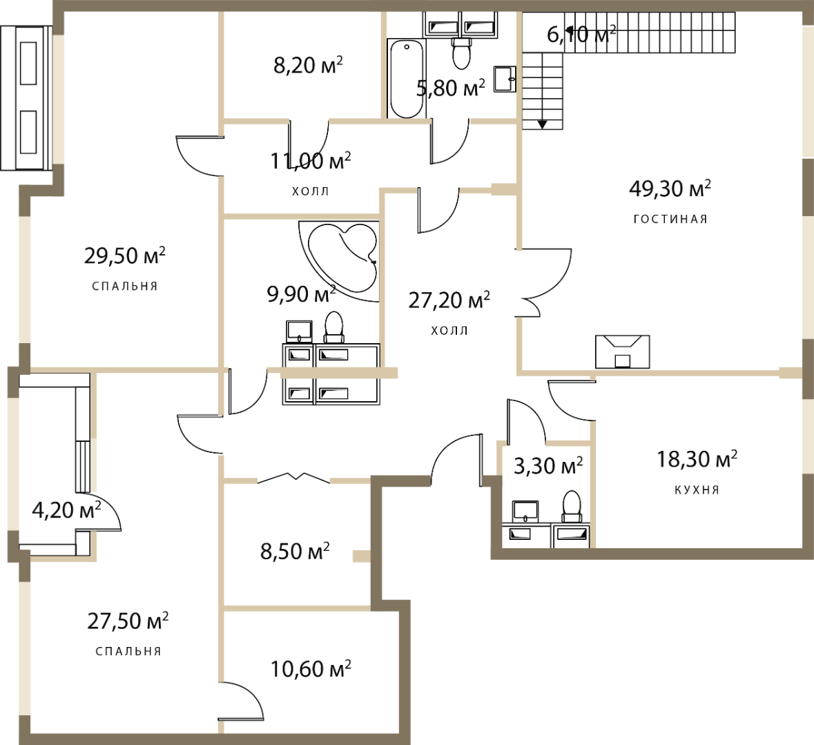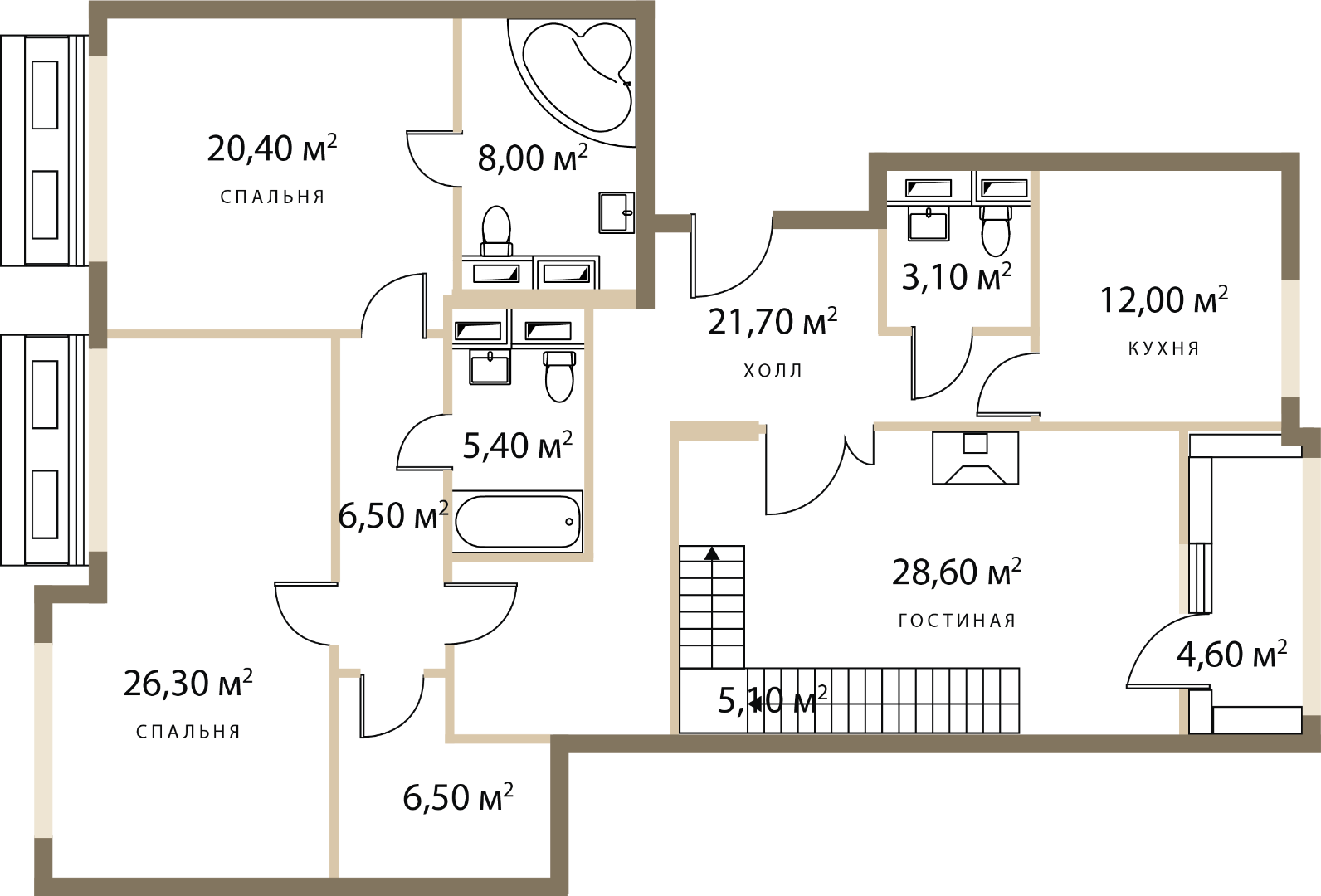 Двухуровневый пентхаус: 179,1 м2